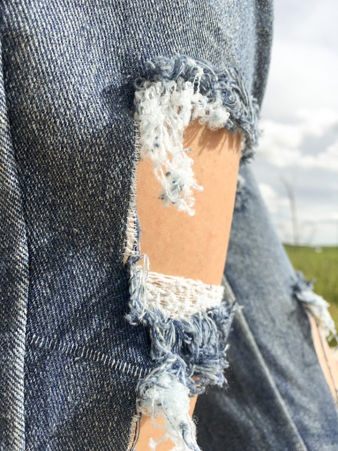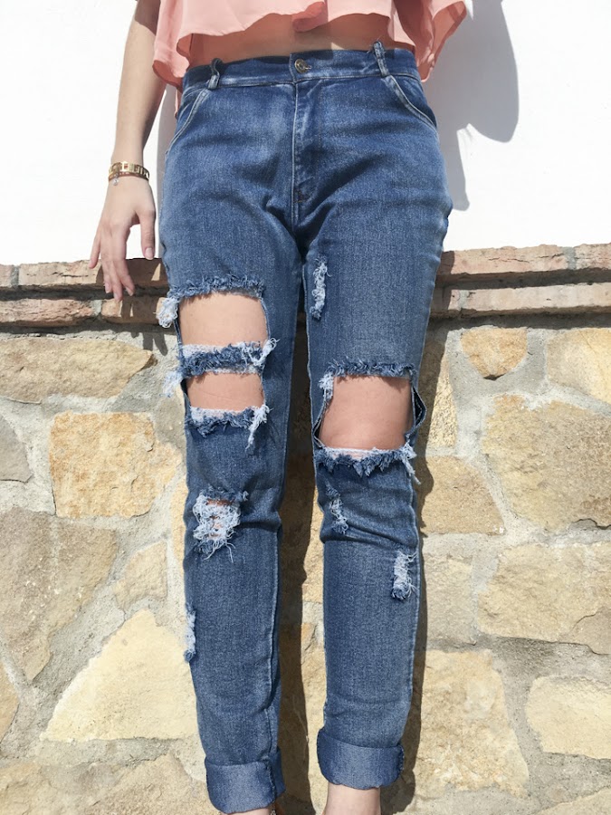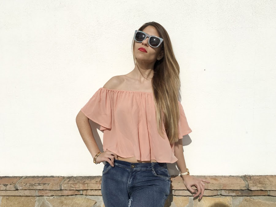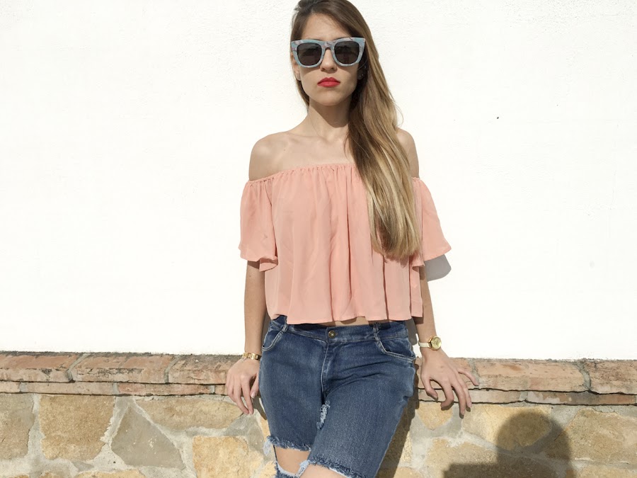 And for the outfit Ive chosen a crop top flight and bare shoulders, a broken jeans, wedges esparto and in addition, my bracelet golden Roman numerals.