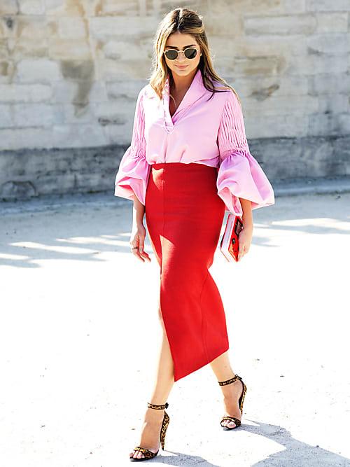 Si consideras que son dos colores demasiado llamativos para tus looks diarios, solo opta por lucirlos en los accesorios, es decir, un cinturón rosa y unos zapatos rojos o un bolso rosa y unos maxi pendientes rosas. Son detallitos que van marcaran las diferencia a tus looks más sobrios pero eso sí con una pequeña dosis de tendencia.