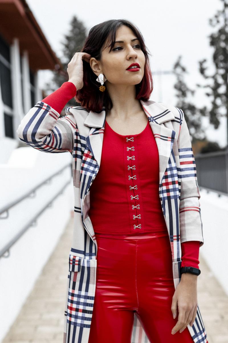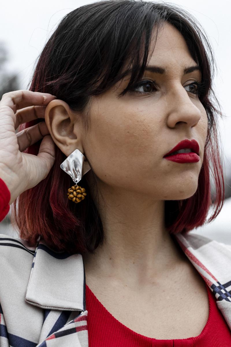 Lo he combinado con una chaqueta de cuadros en tonos beige, rojo y azules y mis súper pendientes de TIJN HOMELIFE, que son una verdadera pasada!!