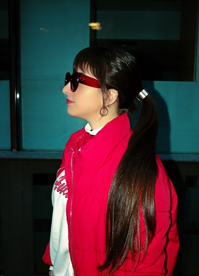 Las prendas estrella sin duda son las prendas de Rosegal, concretamente, una sudadera, un bolso y unas gafas de sol; todos ellos de color rojo, tono muy de tendencia y favorecedor. Lo completo con un plumas rojo ideal para el frío que persiste en mi ciudad y que ya os enseñé aquí (Link), y los famosos pantalones negros con raya vertical (Link).
