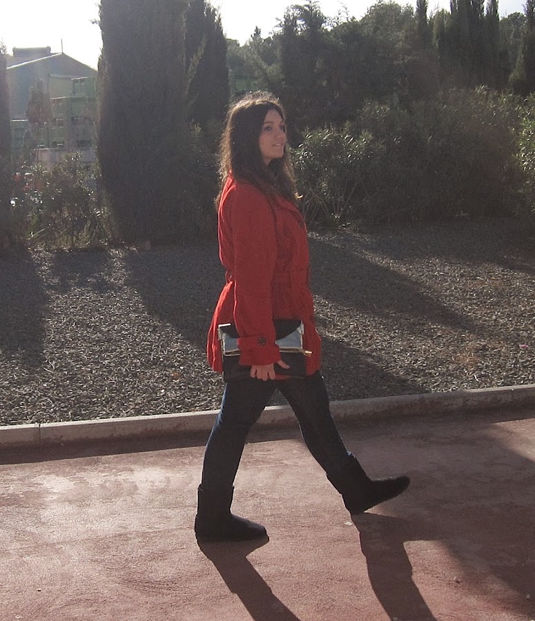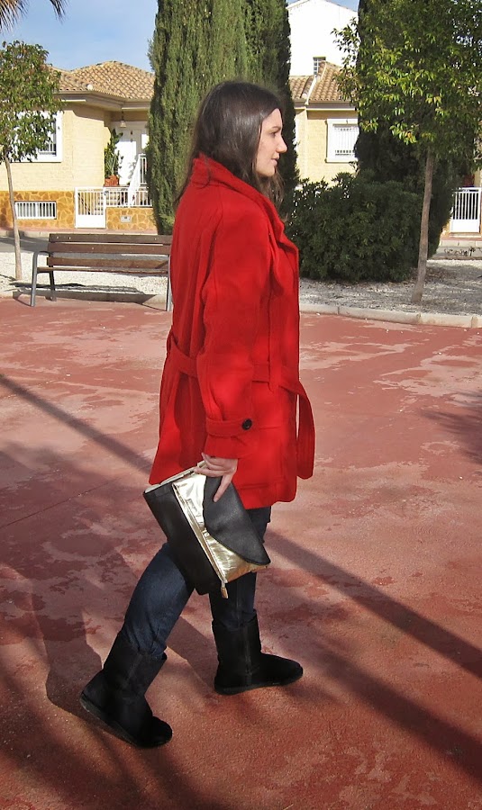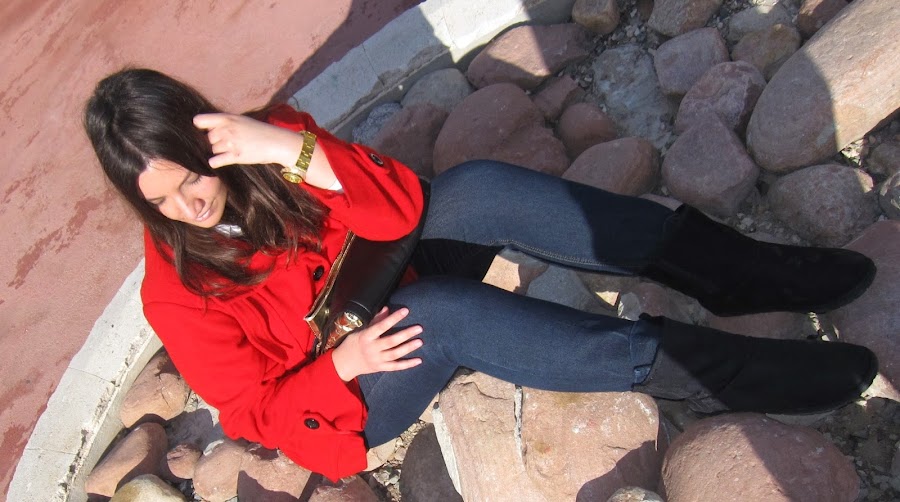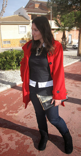 Hoy os propongo un look cómodo y resultón perfecto para ir a clase o a dar una vuelta. Ese día quería ir cómoda pero tampoco quería ponerme cualquier cosa, así que no había nada mejor que jeans más blusa, pero para darle un toque más casual me puse encima mi crop top. Desde que descubrí esa combinación no paro de ponérmela!! jajaja. Para darle un toque de color y luminosidad al look, mi abrigo rojo, un regalo que me tiene enamoradísima!! Como complementos, usé negro y dorado ya que es más elegante.