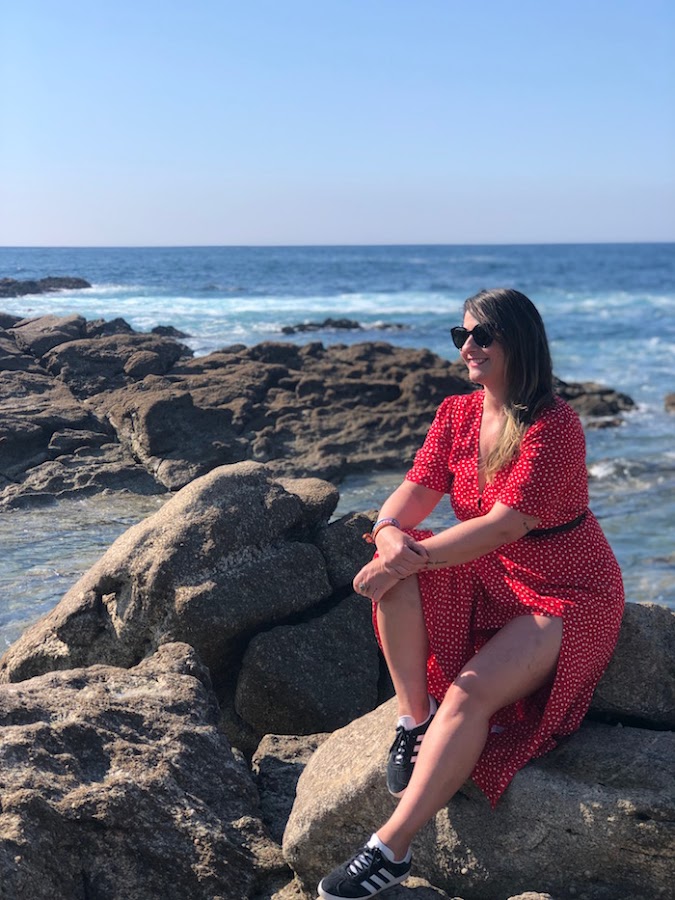 Lo combiné con deportivas negras y no pude elegir mejor opción, porque el día que hicimos las fotos, fue en unas rocas un poco alejadas y con otro calzado iba a ser terrible.