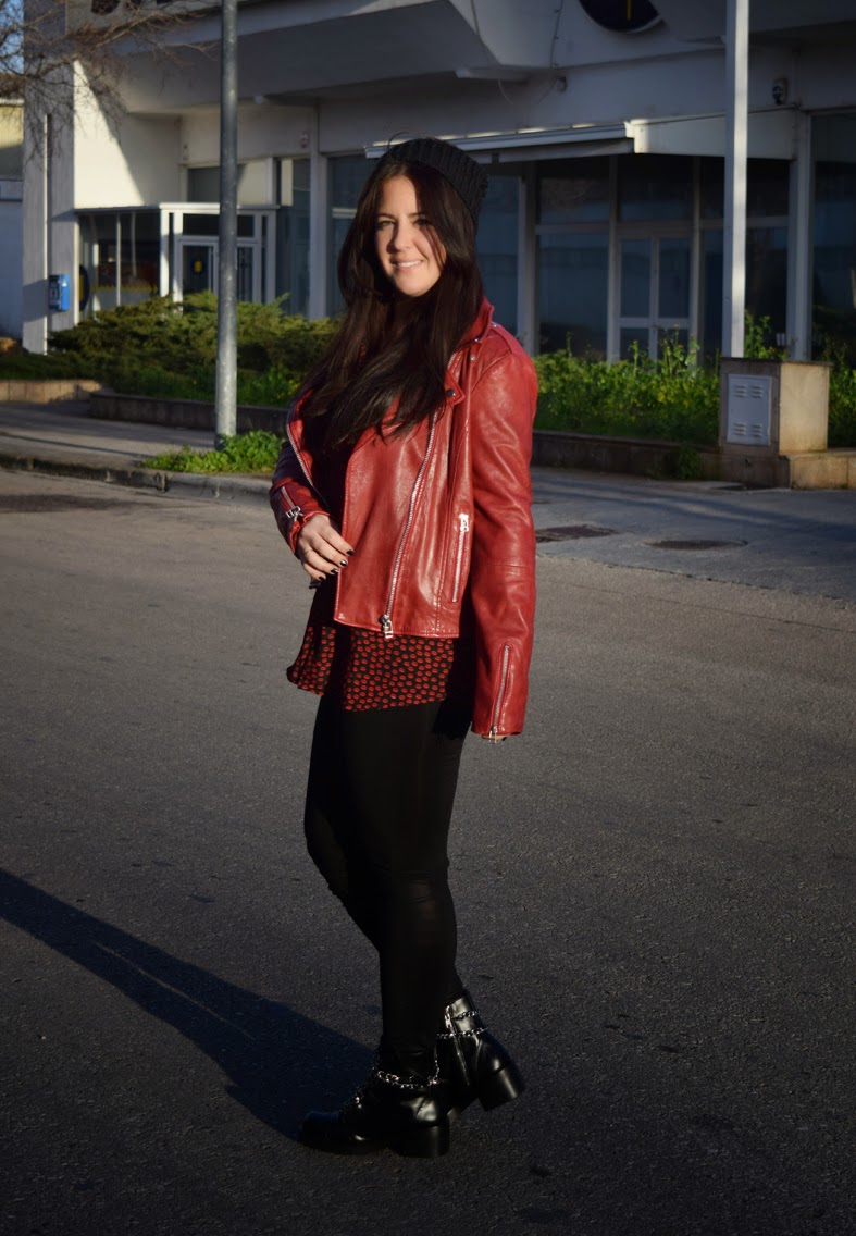 Good morning! Today, a new look, this time with one of my favourites clothes, the leather perfect jacket. It was a present in August but here, in Majorca, thin kind of clothing doesn"t last long in stores and few units arrive. The colour, the texture, all! It"s perfect! So I combined with black and my shirt of kisses in the same tones. A simply look and perfect for every day, don"t you think?