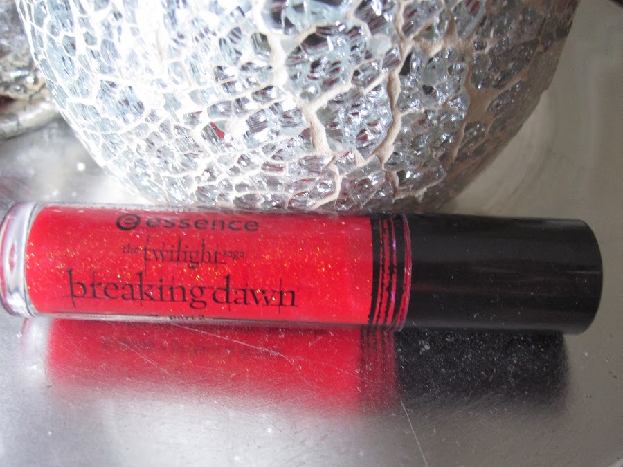 Este brillo labial es de la marca ESSENCE, una edición limitada de twilight BREAKING DAWN. Es multi- heliográfico, de maximo brillo, pero su tono rojo es algo menos intenso que los anteriores, es mas liquido y da un efecto labios mojados. Hay que tener cuidado porque se corre con mas facilidad.