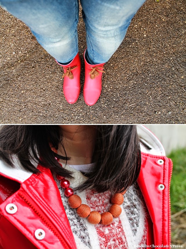 Hola!! ¿Qué tal? Hoy os enseño un look en tonos rojos, ideal para el día lluvioso que estaba, justo paro para hacer el shooting porque después cayo agua a mares, que nos pilló de camino a hacer unas compras de última hora.