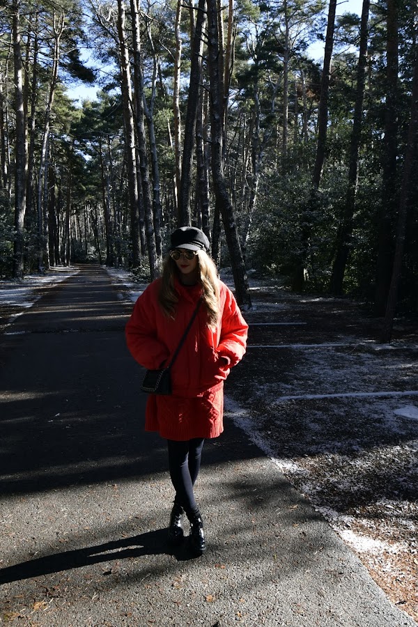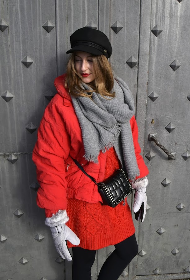 Para la ocasión elegi un look con anorak y Jersey oversize en rojo