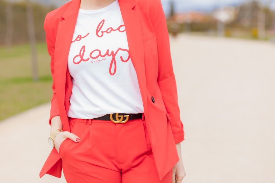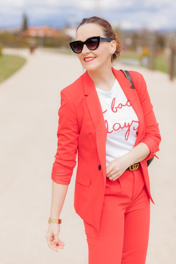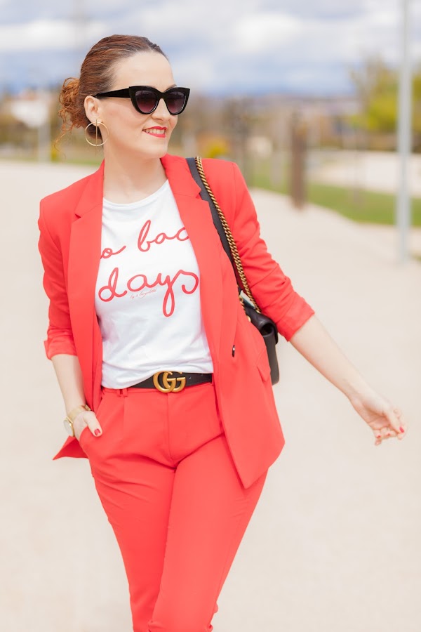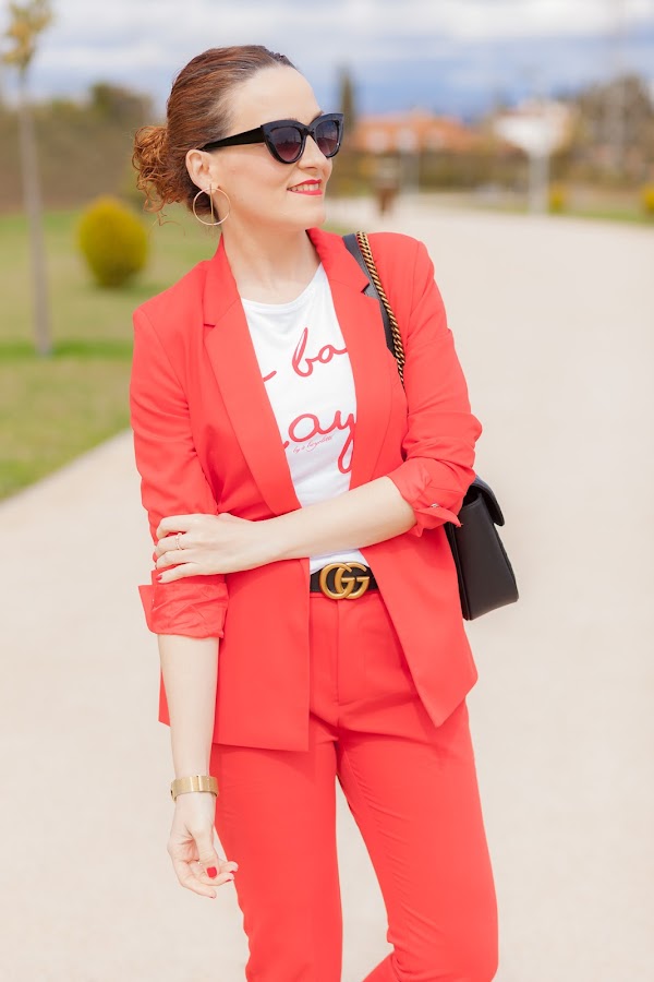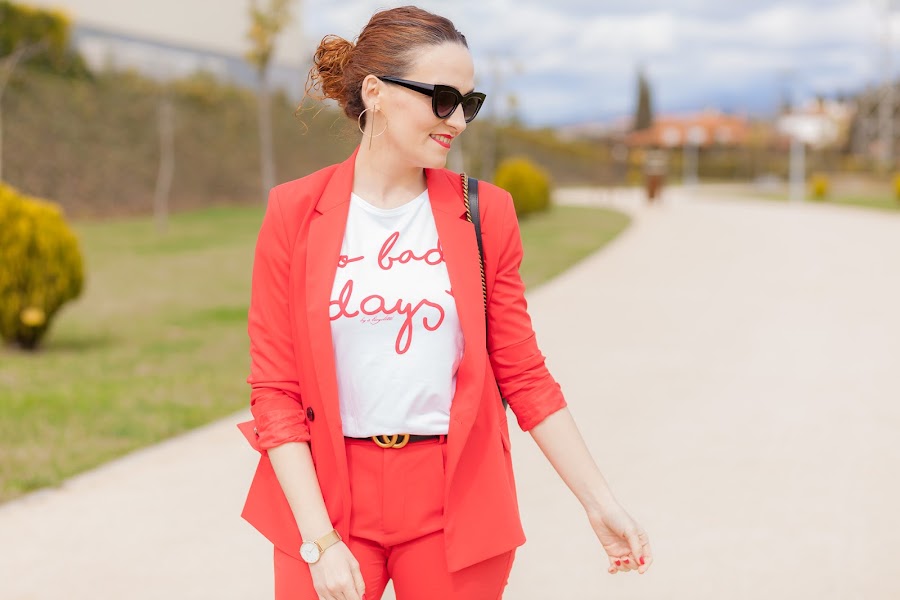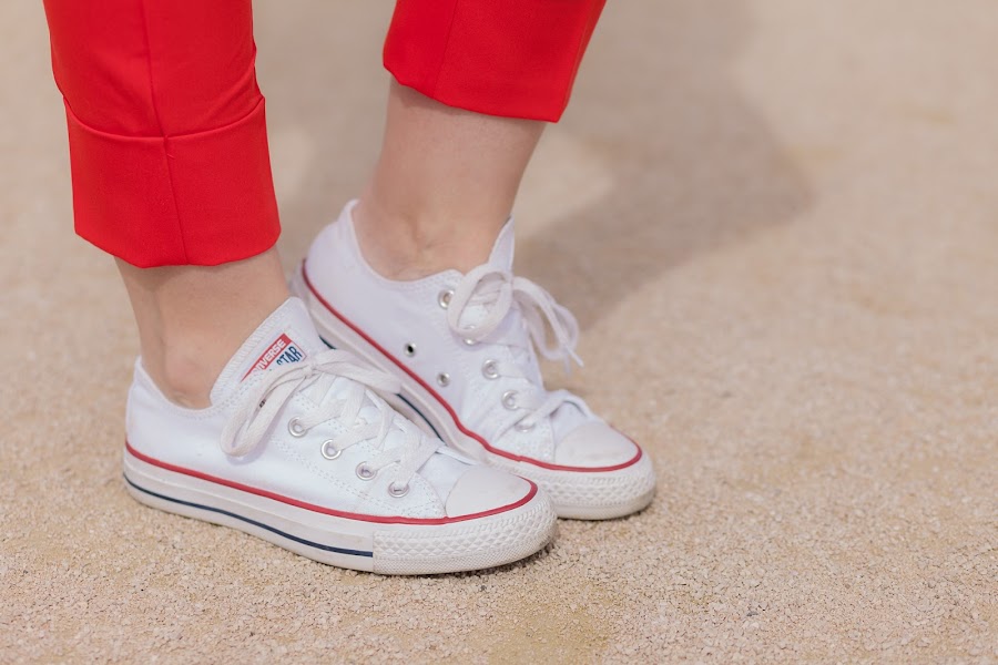 Esta primavera es sin duda la de los trajes. Por ahora los más vistos son los rosas, y sí, yo también he picado en este color que pronto os enseñaré, pero como veís hoy llevo uno en rojo que me flipa y que he combinado con una camiseta que no se queda atrás. Además, le he añadido mis queridas Converse blancas que no pueden gustarme más. Las Converse, desde mi adolescencia, siempre han tenido un hueco importante en mi zapatero ya que son de esa clase de calzado que queda bien con diferentes tipos de looks, y lo mejor, que resultan hiper cómodas. Por eso mismo quiero pasarme por Stileo para mirarme unas nuevas para esta primavera, además como ellos tienen todos los modelos igual me cojo las de plataforma que son otro de los must have de la temporada.