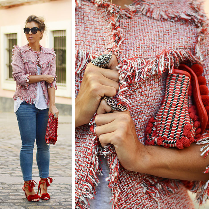 Los que me seguís desde hace tiempo ya sabéis lo que me gustan las prendas de tweed. Es un tejido que además de bonito se adapta genial a todo tipos de looks, por eso nunca tengo suficientes prendas de tweed. Hoy os enseño mi última compra, una chaqueta que combina tonos rojos, crudos y negros y que llevo en un look más formal pero al que tan solo cambiándole los zapatos de salón por unas Converse ...