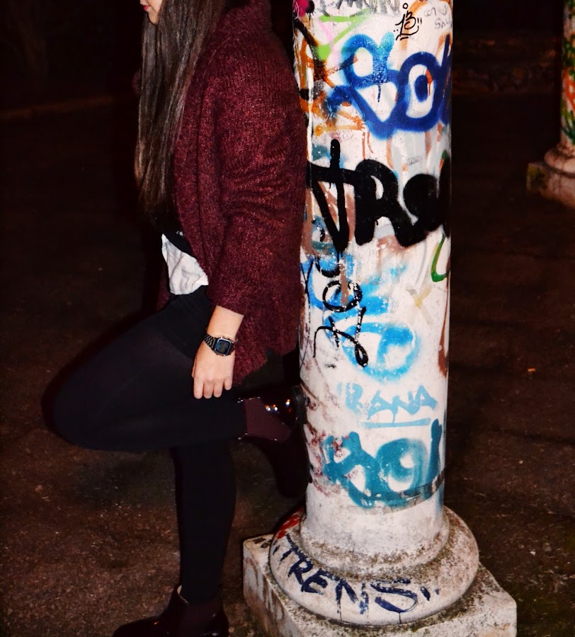 En cuanto a la entrada de hoy, fotos nocturnas con un outfit más arreglado y combinación de blanco y negro que nunca falla más el color estrella de hoy, el granate. También me animé a llevar shorts eso sí con medias, porque el buen tiempo se va notando.