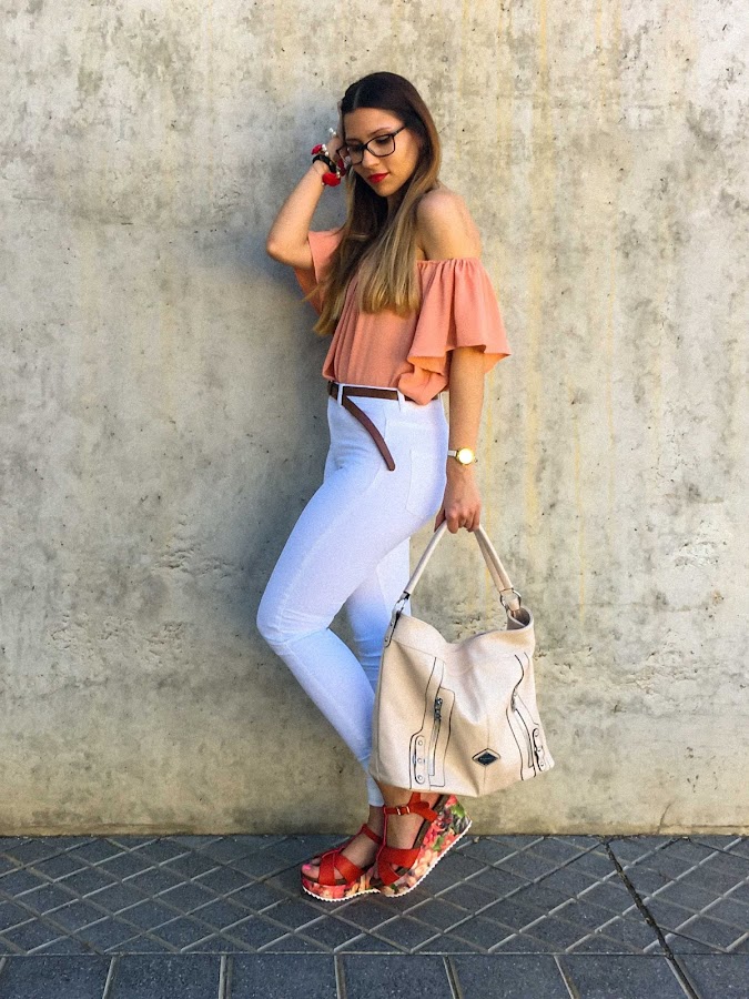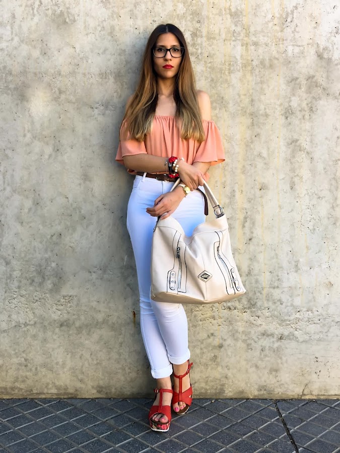 ¿Qué es un look cuando te faltan los complementos perfectos? Nada!! Por eso, yo estoy encantada con mis nuevas sandalias y mi nuevo bolso de Refresh, que podréis comprar en Xti Store. Para complementar el look de hoy, he elegido colorear mis pies de rojo, el color de la pasión, con unas sandalias súper cómodas de plataforma floral y un bolso beige claro con detalle de cremalleras en la parte delantera. Para el look, unos jeans blancos y un top de hombros descubierto que ya habéis visto en posts anteriores!