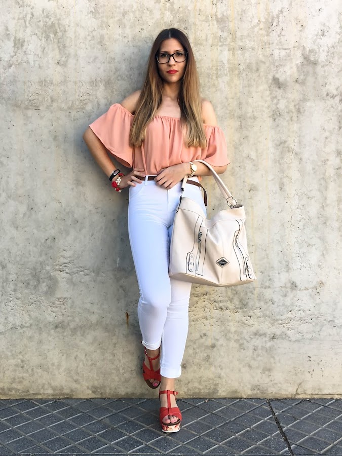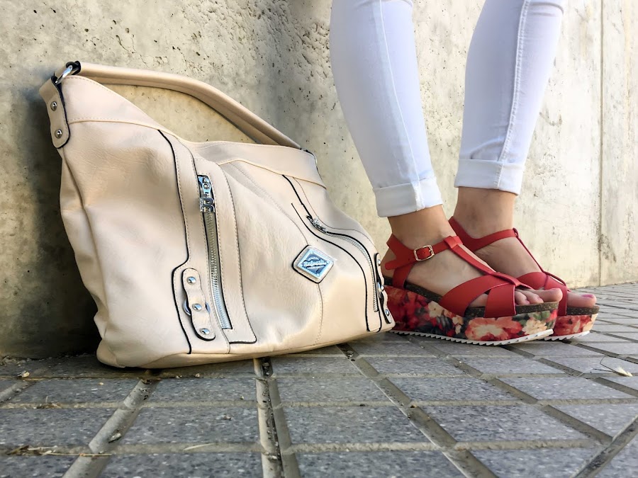 What is a look when perfect complements left? Nothing!! So I am delighted with my new sandals and my new bag Refresh, you can buy in Xti Store. To complement the look of today, I have chosen my feet color red, the color of passion, with a very comfortable platform floral sandals and a light beige bag with zipper detail on the front. For the look, white jeans and a off shoulder that youve seen in previous posts!