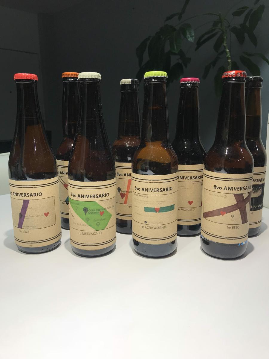 Mi idea principal fue regalarle 8 cervezas artesanales donde cada una tuviera un momento especial que haya pasado durante estos 8 años. No estaba muy segura de si estaba padre el regalo, así que consulte a mi amiga Rox.