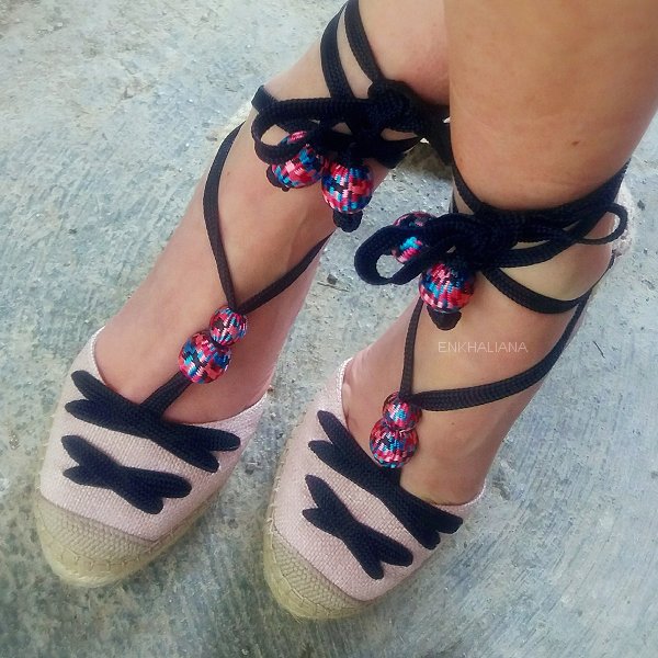 Hace dos años me compre dos pares online y la verdad que no quede muy contenta con la compra porque yo quería un poco más de tacón y luego unas de ellas no me duraron ni un año y solo las puse en verano con lo cual los veranos en Asturias no son todos los días soleados así que las habría puesto unas diez veces, es verdad que estaban en oferta y aún así sin estar en oferta no fueron caras, pero prefiero pagar y que me duren las cosas. Vamos que no vuelvo a comprar en esa web, aunque las que no rompieron esas son bordadas y están bien. El año pasado vi unas pero no me quedaban bien de atrás y no las pude al final comprar porque de atrás me quedaban grandes y eso que me gustaban un montón, pero este año las he encontrado en mi ciudad, que hay una tienda que es como un outlet de calzado de distintas marcas y cuando vi estas me falto tiempo para descalzarme y probarlas. Me enamore de ella y cuando vi que quedaban perfectas puestas no lo pensé y digo esto parte de mi regalo de pascual. Son echas a mano y la verdad que aún siendo en rebajas no son nada baratas.