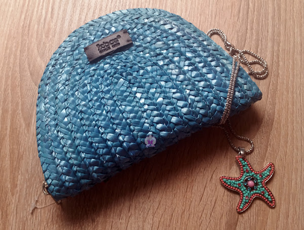 También muy veraniego, como veis, son estos dos regalitos, un bolsito-monedero de mano en tono azul, muy playero y un collar largo con una estrella de mar de colores, que veréis en algún look pronto, ¡seguro! Gracias Sara por tus regalitos playeros.