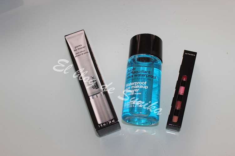 Finalmente las cositas de Sephora. De aquí tengo el desmaquillante que me encanta, es uno de los mejores que he probado, luego el Pores no more de Dr Brandt. Tenía muchas ganas de probarlo porque he oído hablar muy bien de él, ya os contaré mi opinión cuando lo pruebe. También me regalaron una colección de labiales en columna muy práctico para llevar en el bolso.