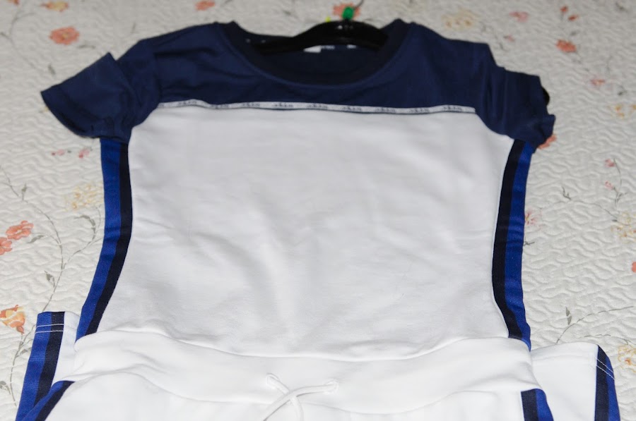 Este vestido corto (llega un poco más arriba de las rodillas) de Adidas comodísimo ya que es elástico y se ajusta perfectamente al cuerpo,con la peculiaridad de que las mangas tiene tejido tipo rejilla pero algo muy fino,nada basto.