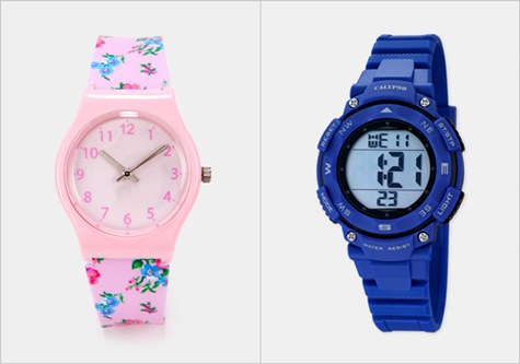 Relojes para niños de venta en El Corte Inglés, varios modelos y marcas. El rosa es de la marca Cotton Juice (15,95 €) y el azul es de la marca Calypso (29€).