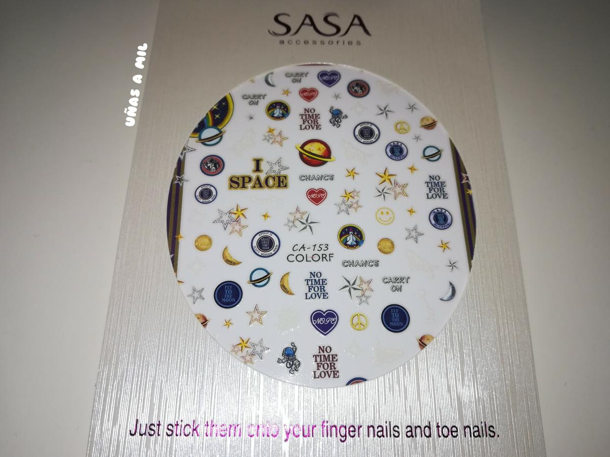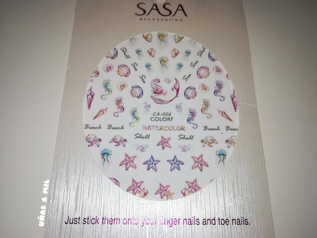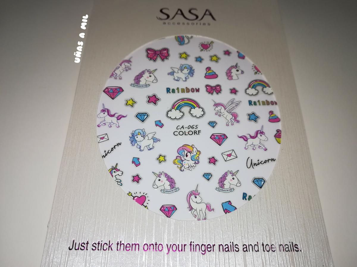 Son de Sasa Accesories, es la primera vez que compro algo de esta marca porque nunca la había visto, así que compré varios paquetes porque me gustaban todos los diseños, ¡¡no podía elegir sólo uno!!. Además ya he estrenado alguna de estas pegatinas y la verdad que me han gustado mucho porque se adhieren perfectamente a la uña y son muy finas, por lo cuál no se nota al tacto que son pegatinas y así no se ”levantan” con tanta facilidad.