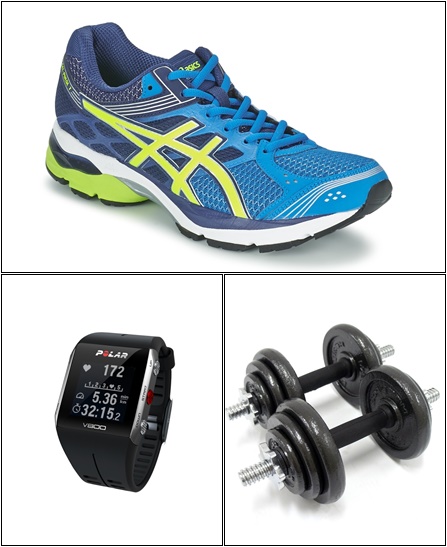 Deportista. Siempre es buen momento de renovar el material deportivo: unas buenas zapatillas, unas pesas para entrenar o un pulsómetro chulo. Las zapatillas son de Asics (100 € aprox.), el pulsómetro de Polar (184 € aprox.), y las pesas se pueden comprar en Decathlon (12,95 € cada juego de mancuernas de 10 Kg).