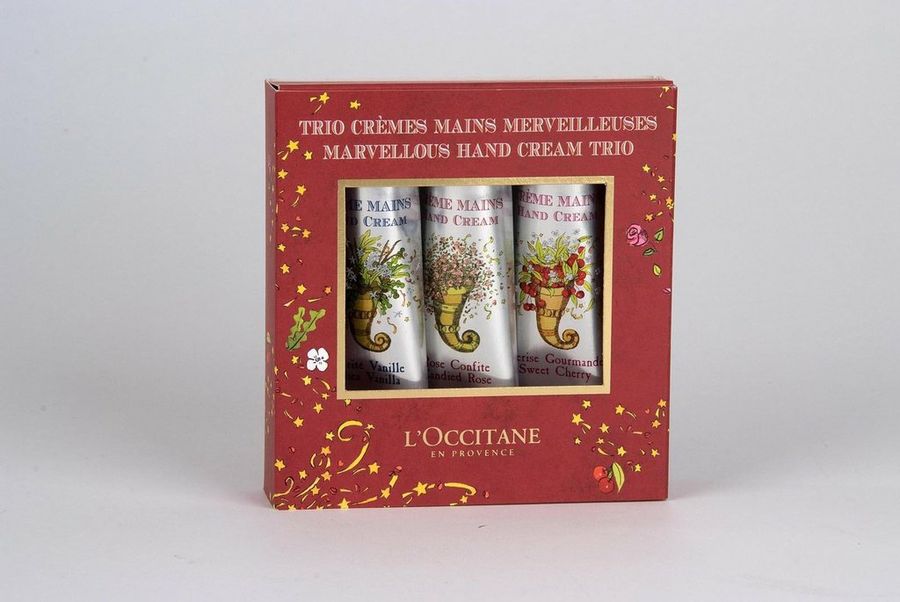 Buscando una Navidad llena de aromas y festividad, en L'Occitane en Provence nos deleitan con una magnífica gama de rosas, almendras, cerezas y vainilla. Prepárate para sacarle una sonrisa de felicidad obsequiándole con este bonito kit de tres cremas para mantener hidratadas sus manos. Todo un mundo de fragancias para compartir.