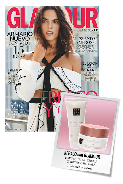 Empezamos el post con la revista Glamour, que trae de regalo un producto de Rituals a elegir: exfoliante o crema corporal de la línea Ritual of Sakura.