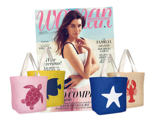 Con Woman tenemos de regalo una bolsa grande de playa en 4 modelos distintos. La azul marino con la estrella de mar en blanco me ha gustado un montón, ¿y a vosotras?