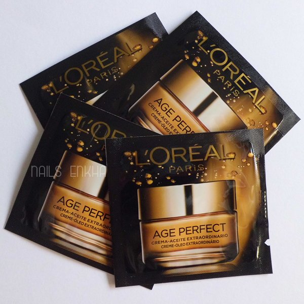 Las muestras son de Age Perfect de loreal que es una crema - aceite extraordinaro que nuetre, rivitaliza e ilumina.