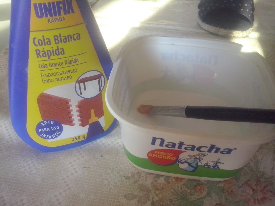 Mezclamos cola blanca con unas gotitas de agua (chorrito pequeño)