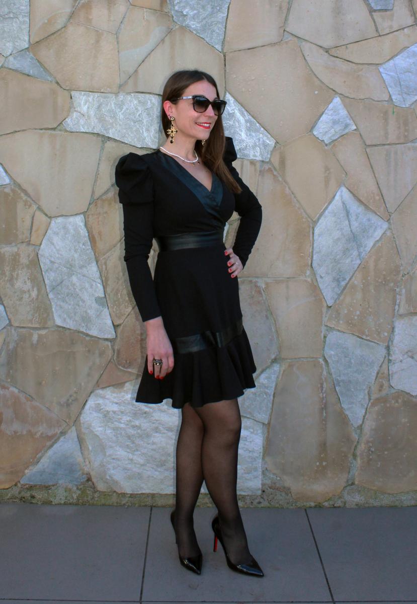 7.-No me canso: y por ultimo, vestido con con escote en V, con vuelo y ribetes en piel.