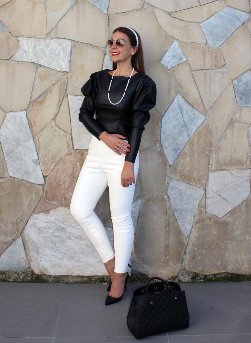 2.-Total leather: en esta caso un top de polipiel ceñido en el antebrazo y más voluminoso desde el codo hasta el hombro.