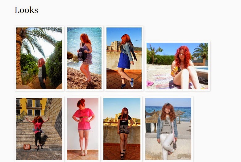 Un muy necesario apartado de looks, que es la temática principal del blog, donde pondré una imágen que, clickando sobre ella, os llevará directamente al post en cuestión, haciendo así más cómoda la navegación.