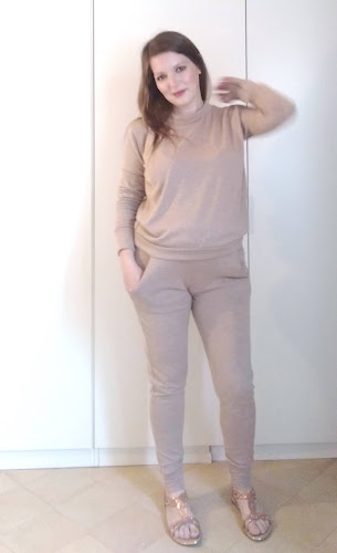 Es del estilo del negro que os mostré en el post anterior pero el tejido es algo más ligero. También resulta muy cómodo, y aunque se puede usar perfectamente para salir con un estilo sport, por el tono que tiene me gusta más para estar cómoda y "presentable" en casa (ideal para estos "looks de confinamiento" que hemos pasado...). Eso sí, con algún que otro complemento más formal, viste más de lo que parece.