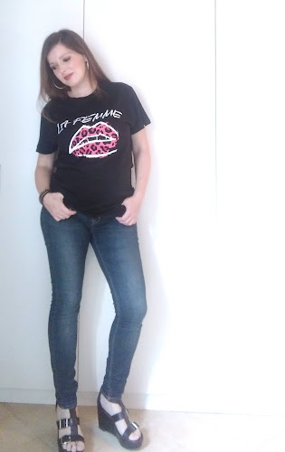 En esta ocasión, la camiseta negra repite vaquero ajustado, pero he añadido unas cuñas más gruesas negras en piel con hebillas plateadas, al igual que los pendientes en aro y el brazalete
