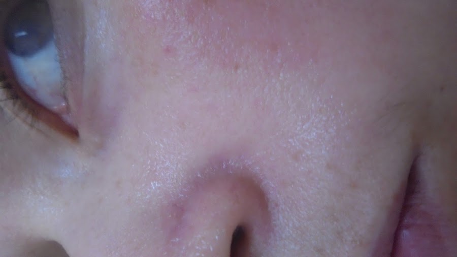Antes de empezar con las fotografías quiero contarles que decidí colocármela hoy porque el frío ha resecado mi piel al punto de que en ciertas zonas a empezado a escamarse, específicamente en los laterales de la nariz. Por favor ignoren mi paño culpa de mis embarazos, jeje :)