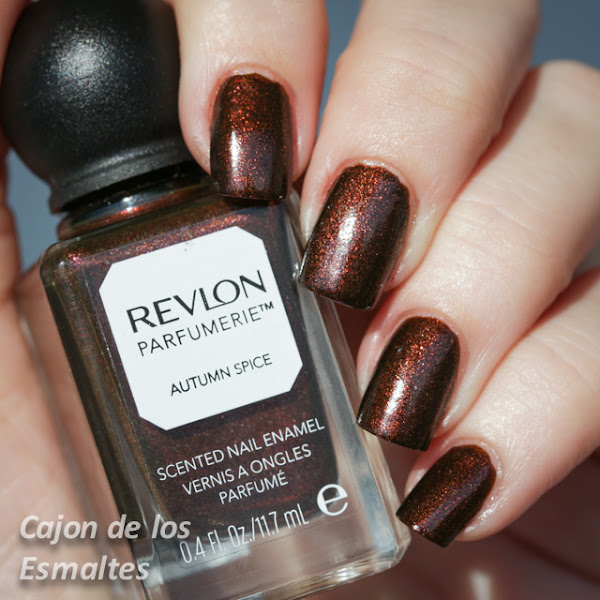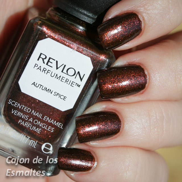 Dos manos de Revlon Autumn Spice con topcoat - Sombra