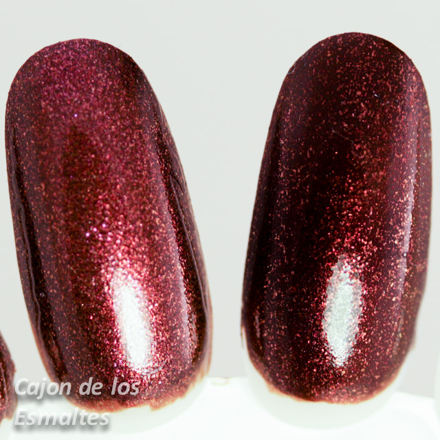 En la botella el esmalte te puede dar la impresión de un efecto duocromo, pero no, ni en el ángulo más extremo lo veo cambio de color así que no vayan con esas expectativas.