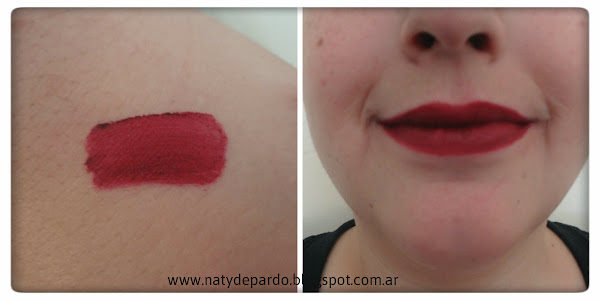 Yo estaba enamorada de tantas fotos hermosas en instagram y videos de youtubers. Pero la verdad es que yo no logre la opacidad en mis labios como las fotos que veía. Es color en el swatch que ven abajo me sigue gustando, es un color precioso. Pero en mis labios quedo todo parchoso y se corría por todo el borde. Si lo buscan en google van a ver que se ve mas oscuro que como me quedó a mi.