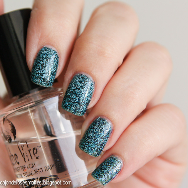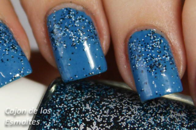 Cuando vi los swatches de Anna Gorelova fue amor a primera vista (debo reconocer que Anna es capaz de venderme pintura de auto y que me la ponga en las uñas con una sonrisa). Obviamente no se conseguían en ningún lado y caí en la tentación de probar el comprar directo en el sitio de Dance Legend. Casi tres meses más tarde llegaron las bellezas a casa y entre ellas estaba el 1003 - Zebrasoma, un jelly de base azulada con micro glitter blanco y negro. Aquí se los muestro con un gradiente esponjeado sobre una capa de Pacific Blue de Sally Hansen.