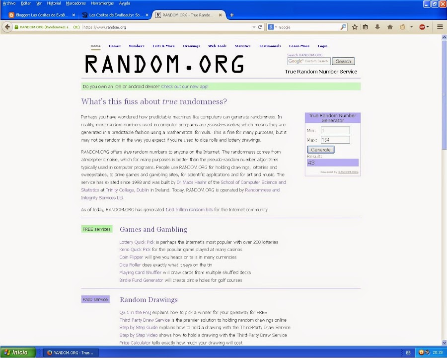 He utilizado el programa Random.Org como os dije en la entrada del sorteo para realizar la resolución, y el número ganador.... es.....