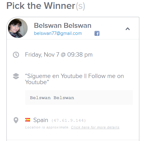 A las demás participantes, muchisimas gracias por haber participado, gracias a ustedes he llegado alos 100 seguidores en el blog, los 50 en youtube y los 200 en Instagram ^^ y no os preocupeis que cuando tenga tiempo organizaré otro sorteito para que tengáis vuestra oportunidad.