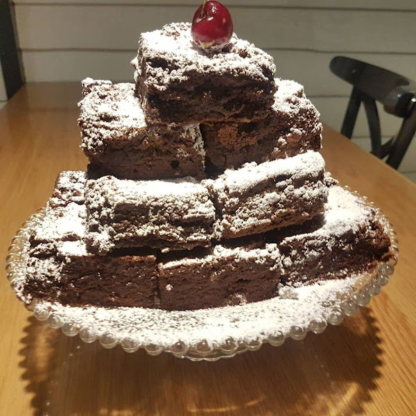 Tartas: tarta de manzana, brownie de chocolate con helado de vainilla, tarta de queso