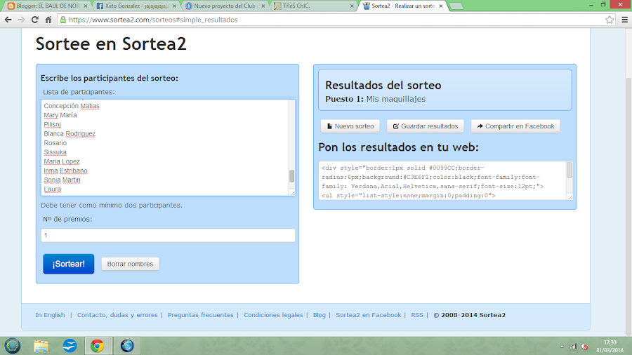 Nos pondremos en contacto con la ganadora mediante correo electronico