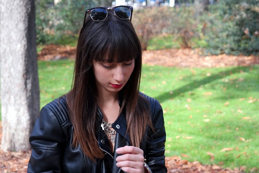 New and newer week. In addition, in February... My has always been a month that I liked but now I caught in all tests, but there is nothing for my birthday and although I am old, Ive always liked that my birthday comes . That there is still good for just under a week... As I leave you with some pictures I took on my last visit to Madrid. We went through the park and take retirement and to make these pictures because it was super nice. I love the site and look. You see, I do not take off my black biker, he is saving all looks. When something I do not like, I wear and I look and beautiful haha. And I love that necklace crossings so a whole, for me, perfect. I hope that you enjoy you too. Im going to continue to study, you know full exams! Much courage and luck to whom you are like me. Kisses!