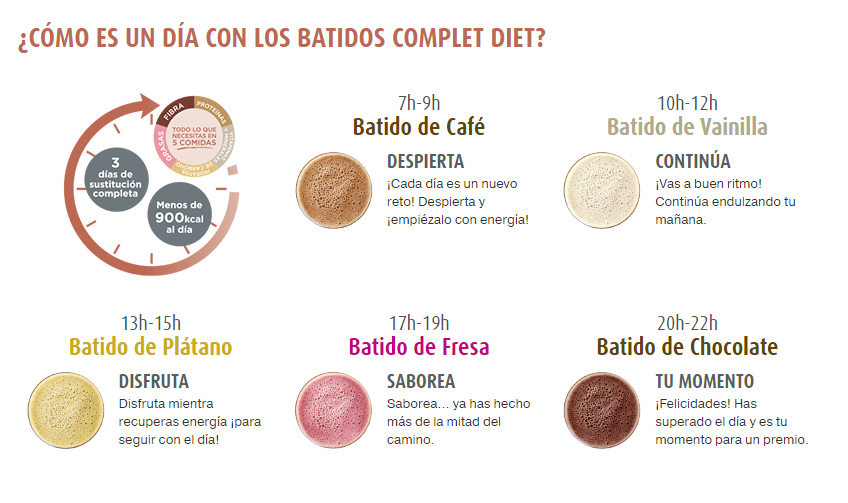 Resumiendo un poco, como os contaba el otro día, Complet Diet es una dieta hipocalórica mas restrictiva y nutricionalmente adecuada, para conseguir una pérdida de peso mas segura. Con un aporte calórico inferior a 900 calorías por día. Como ya sabéis, es una dieta de tres días de sustitución completa, a base de batidos para adelgazar con resultados.