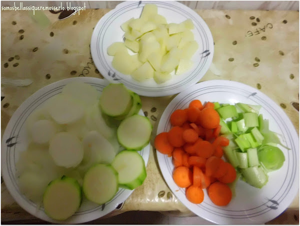 Antes que nada, partir todos los ingredientes en trozos no muy grandes...