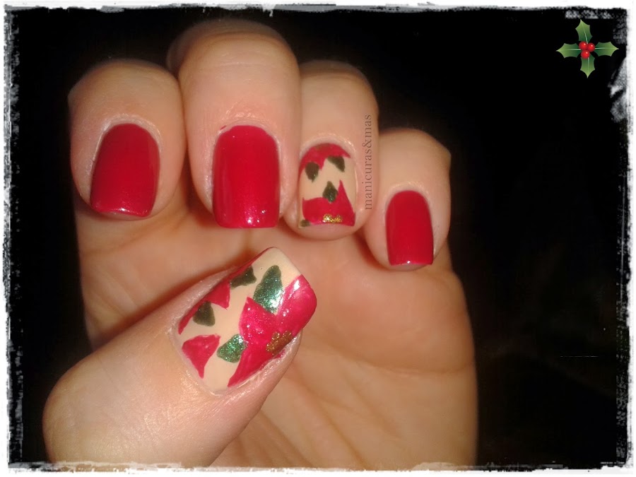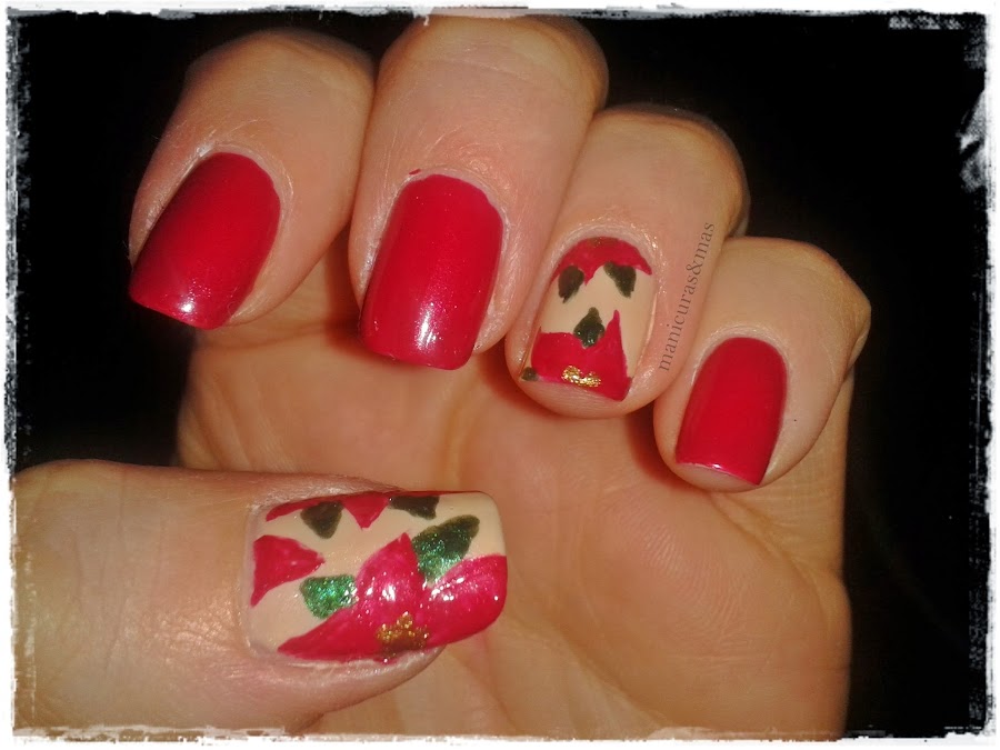 Solo he dibujado las flores de pascua en un par de uñas para no cargar demasiado la manicura, ¿qué os parece?