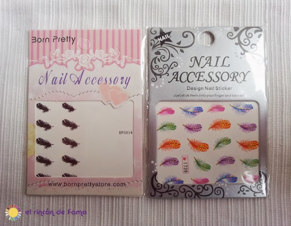 La verdad es que simplemente así ya me encanta el resultado pero me acordé de unas water decals que compré hace (sin exagerar) cinco meses en bornpretty store y todavía no había estrenado y me parecieron perfectas para combinar con las que gané en una promoción en su blog y os enseñé AQUÍ. Estos son los dos tipos que utilicé: