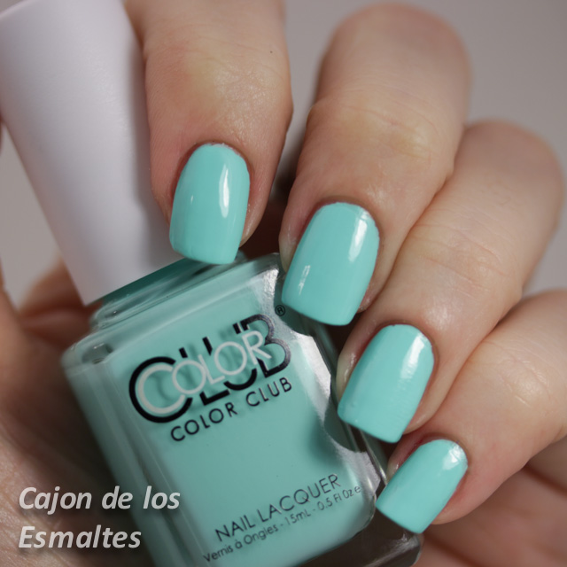 Volviendo al tema del reto, color favorito, en mi caso dentro del montón de verdes menta - turquesas que tengo hasta hace unas semanas se hacía difícil escoger uno...hasta que llegó a casa Blue Ming de Color Club. Por fin un turquesa pastel pero vibrante y de buena fórmula a un precio razonable!. No será un color super original y "solo" es un creme pero nivela!! Y con dos capas sencillas queda perfecto sin base matte ni nada. Y es uno de esos colores tan alegres y primaverales que te levantan el ánimo.