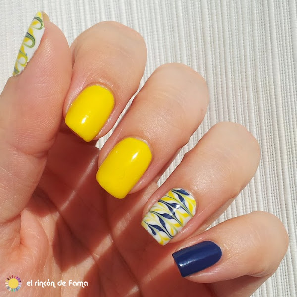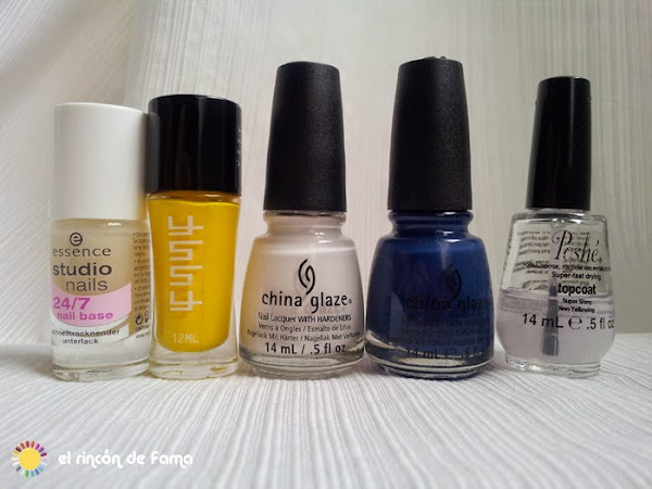 ? Para la base: Amarillo de Yssy (dos capas), blanco y azul de China Glaze