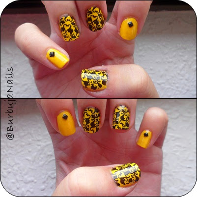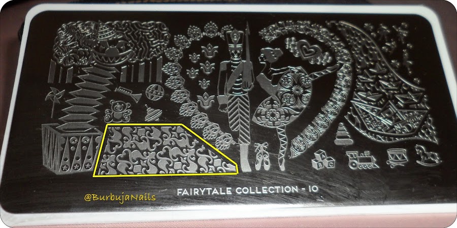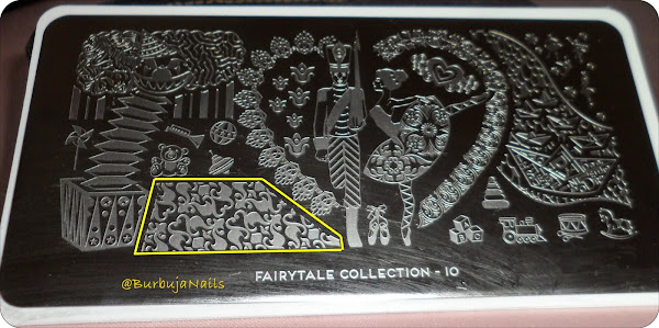 5. En el resto de las uñas estampamos el diseño que he marcado en la placa.